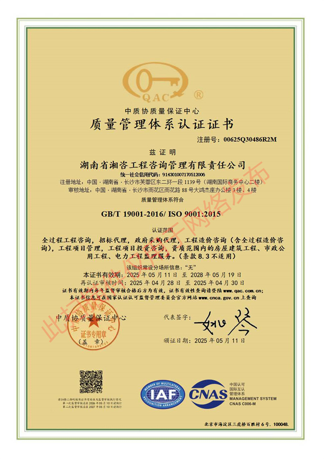 近期,有許多人自稱是湖南省湘咨工程咨詢管理有限責任公司(簡稱湘咨管理)職員,開展招標代理、造價、監理、工程咨詢等業務活動。在此,我們鄭重聲明:凡我司職員或授權開展相關業務人員,都具備“湘咨管理”電子名片小程序,請各地方客戶和廣大群眾提高警惕,謹防上當受騙。如已造成損失,及時向當地公安機關舉報案件線索。我司保留采取相應法律手段的權利。特此聲明。我司聯系人:王工 聯系電話0731-84447300-2090。